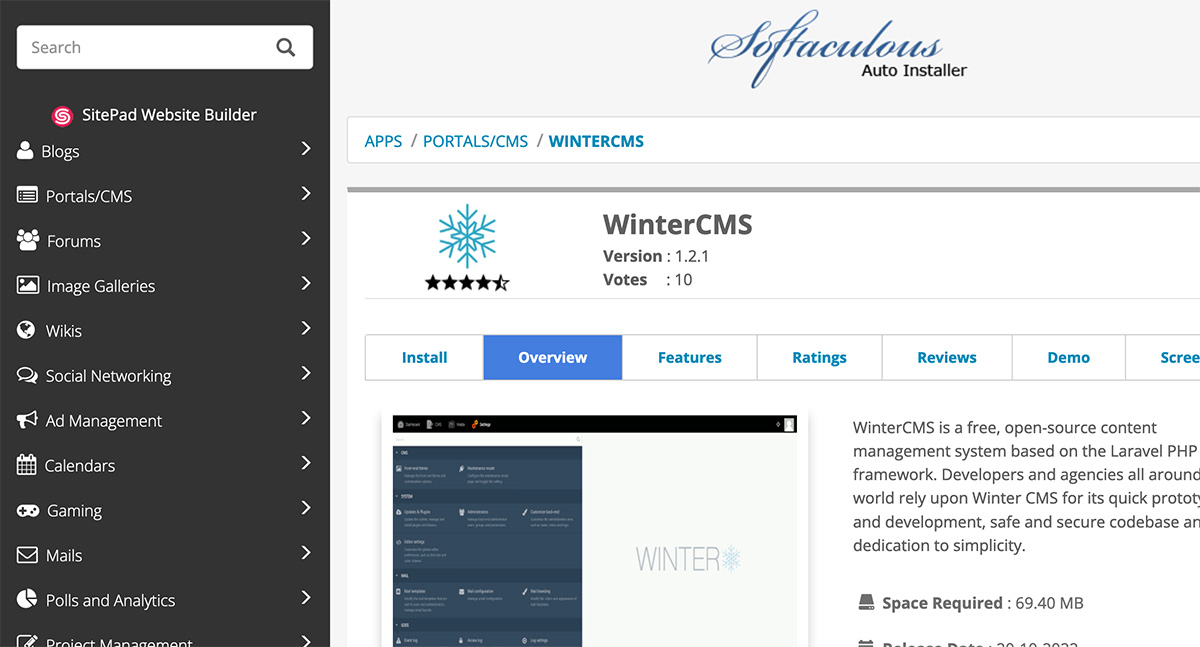 Search for Winter CMS in your website control panel under the Softaculous section or click below to install directly with Softaculous.